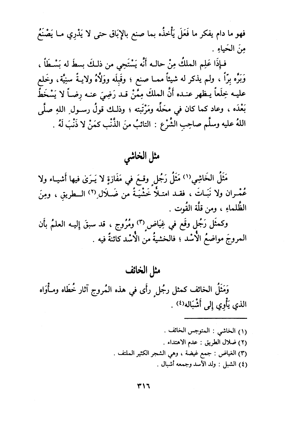 وَمثل الْخَائِف كَمثل رجل رأى فِي هَذِه المروج آثَار خطاه ومأواه الَّذِي يأوي إِلَى أشباله