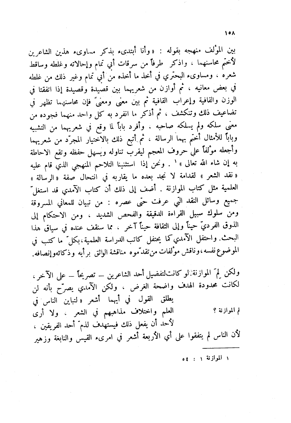 ولكن لم الموازنة لو كانت لتفضيل أحد الشاعرين - تصريحاً - على الأخر، لكانت محدودة الهدف واضحة الغرض، ولكن الآمدي يصرح بأنه لن يطلق القول في أيهما أشعر " لتباين الناس في العلم واختلاف مذاهبهم في الشعر، ولا أرى لأحد أن يفعل ذلك فيستهدف لذم أحد الفريقين، لان الناس لم يتفقوا على أي الأربعة اشعر في امرئ القيس والنابغة وزهير