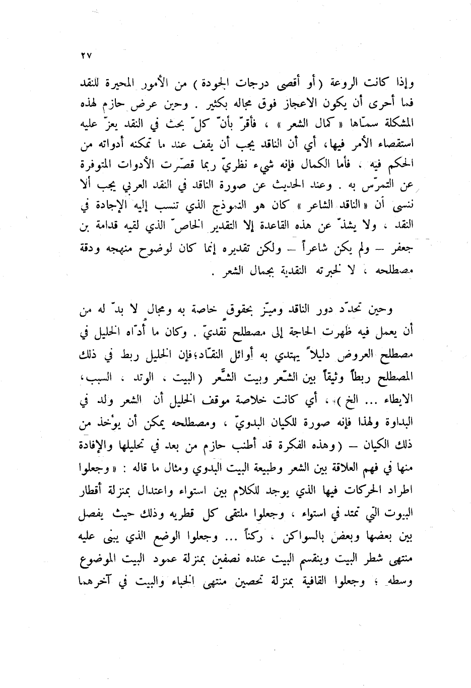 ولم يخرج تصور الوحدة لدى النقاد العرب عن صورة التكامل والتناسب معاً؛ وكانت أقصى درجات التعبير عن هذا النوع من الوحدة هي الإشارة إلى انه العلاقة بين اللفظ والمعنى هي علاقة الجسد بالروح؛ وقد نقل الحاتمي هذه الوحدة القائمة على التكامل والتناسب إلى صورة الجسد نفسه: " فإن القصيدة مثلها خلق الإنسان في اتصال بعض أعضائه ببعض فمتى انفصل واحد عن الآخر أو باينه في صحة التركيب غادر بالجسم عاهة تتحيف محاسنه وتعفى معالم جلاله "، وقد استعار ابن رشيق هذه الفكرة من الحاتمي، ورددها من تأثروا بابن رشيق من بعد؛ ولم تتجسد قضية الوحدة في ذهن حازم من غير الطرق الشكلية والحيل الشعرية، لأنه كان مشغول الذهن بالتأثير في نفس السامع حين تحدث عن التنويع في انتقال الشاعر أثناء قصيدته من فصل إلى فصل: " أن الحذاق من الشعراء؟ لما وجدوا النفوس تسأم من التمادي على حال واحدة وتأثر الانتقال من حال إلى حال، ووجدوها تستريح إلى استئناف الأمر بعد الأمر واستجداء الشيء بعد الشيء، ووجدوها تنفر من الشيء الذي لم يتناه في الكثرة إذا أخذ مأخذاً واحداً ساذجاً ولم يتحيل فيما يستجد نشاط النفس بقبوله بتنويعه والافتنان في أنحاء الاعتماد به وتسكن إلى الشيء وغن كان متناهياً في الكثرة إذا أخذ من شيء مأخذه؟. اعتمدوا في القصائد أن يقسموا الكلام فيها إلى فصول ينحى بكل فصل منها