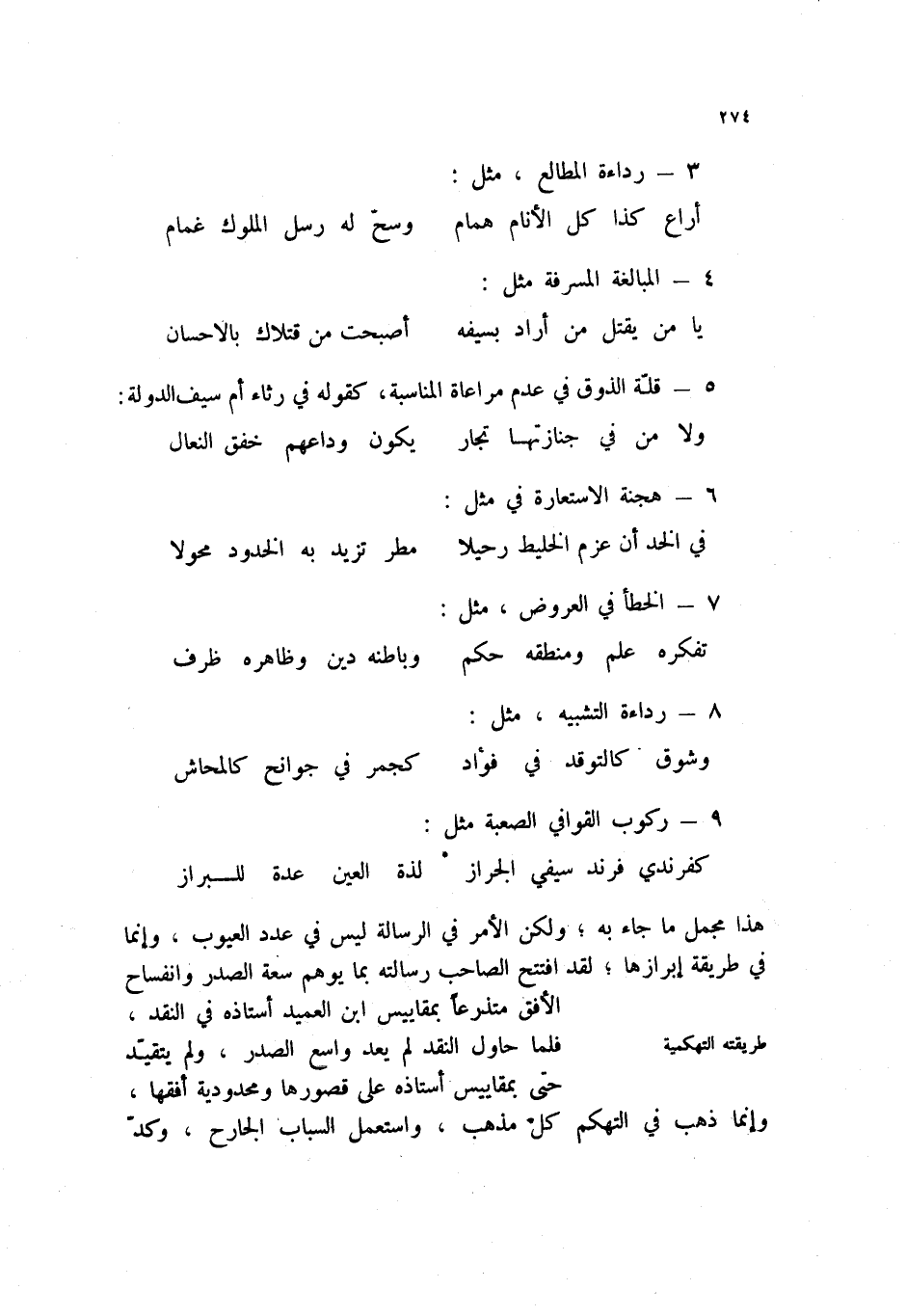 يا من يقتل من أراد بسيفه ... أصبحت من قتلاك بالإحسان 5 - قلة الذوق في عدم مراعاة المناسبة، كقوله في رثاء أم سيف الدولة: