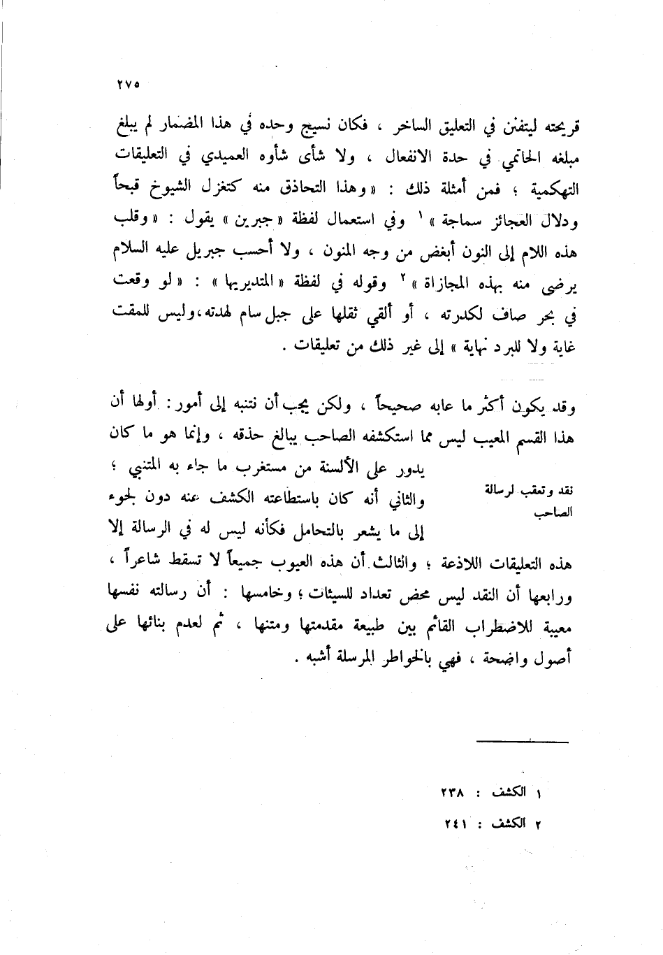 نقد وتعقيب لرسالة الصاحب