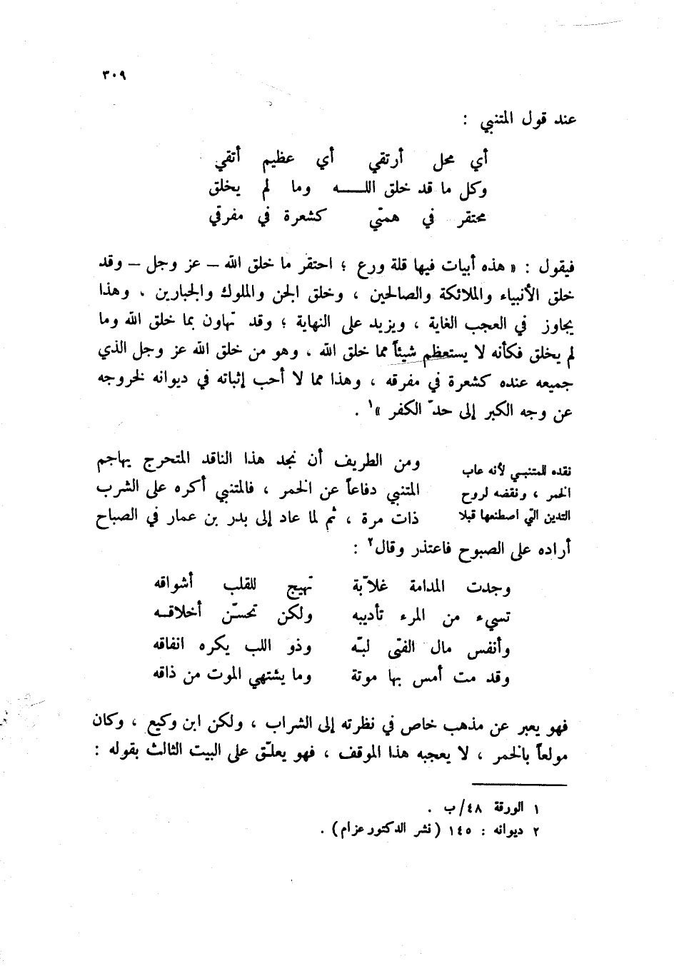 (2) ديوانه: 145 (نشر الدكتور عزام) .