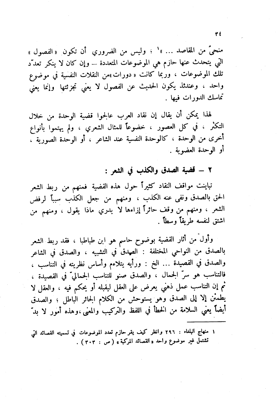 والحق أن جواب حازم على هذه القضية كان رصيناً ومقنعاً، وذلك أن اعتماد الشعر على المعاني الجمهورية، يبطل القسم الأعظم من دعاوى السرقة، ولا يبقي في الميدان إلا الصور " العقم " - وهي الصور التي توصل إليها شاعر على نحو من الابتداع وعرفت به (كتشبيه عنترة للروضة " ومثل هذه الصور والمعاني لا يحتاج ثقافة واسعة لدى الناقد، ثم لا يحتاج