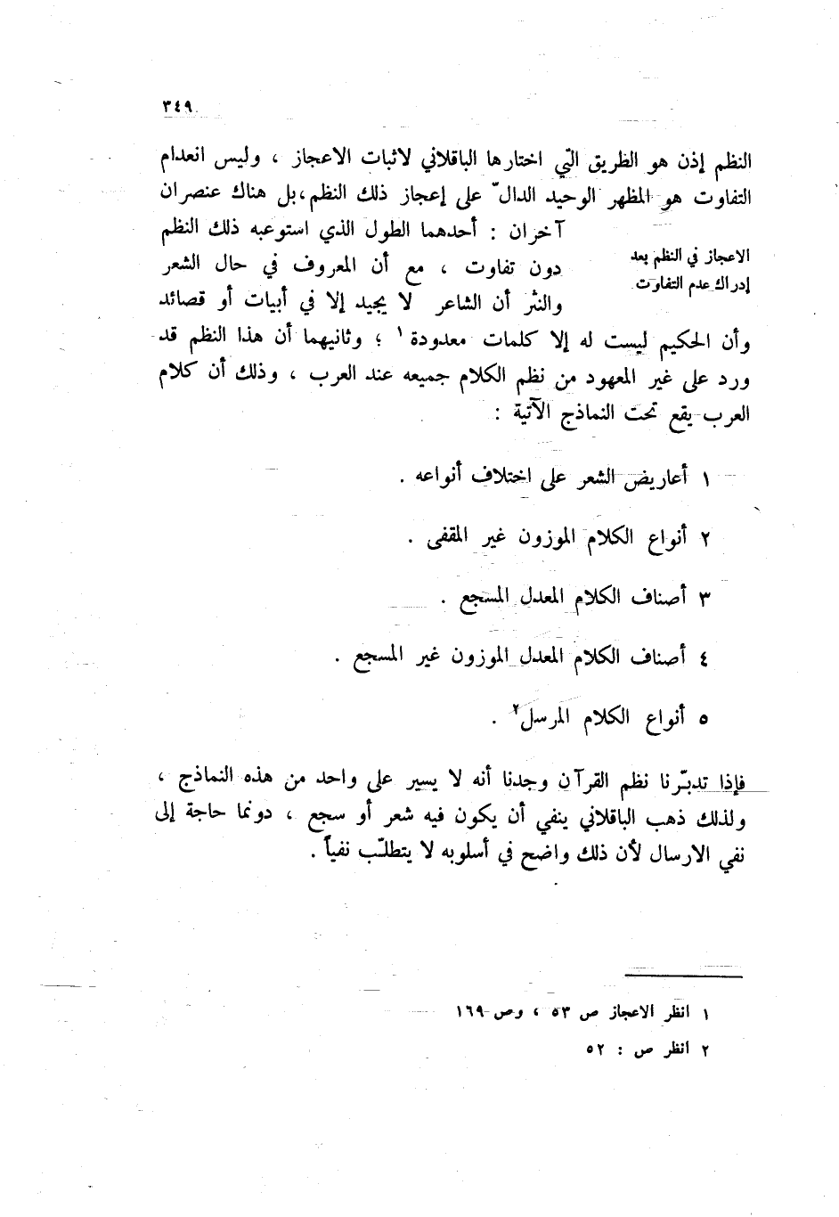 فإذا تدبرنا نظم القرآن وجدنا أنه لا يسير على واحد من هذه النماذج، ولذلك ذهب الباقلاني ينفي أن يكون فيه شعر أو سجع، دونما حاجة إلى نفي الإرسال لأن ذلك واضح في أسلوبه لا يتطلب نفياً.