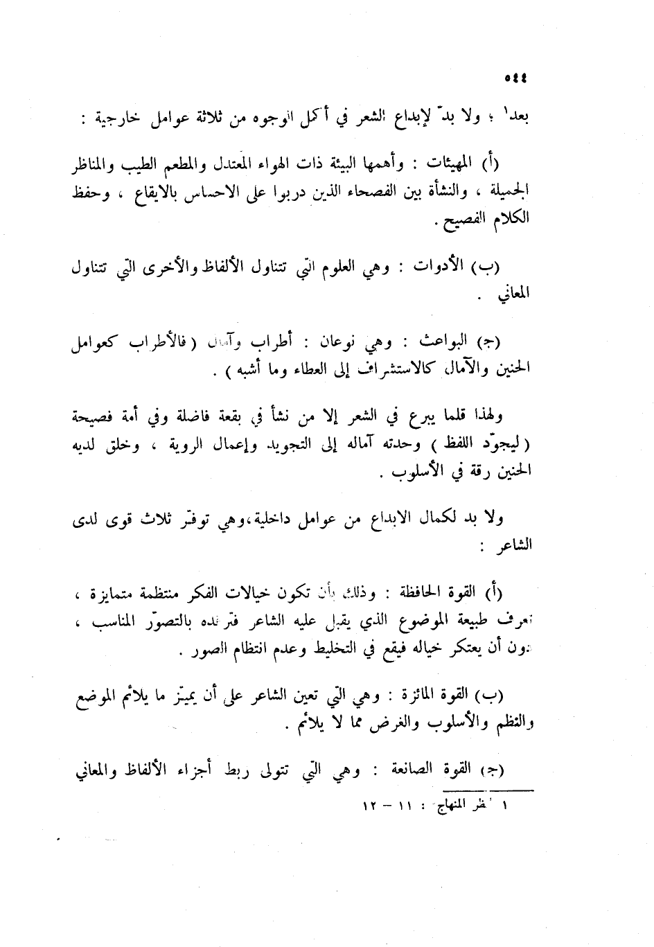 بعد (1) ؛ ولا بد لإبداع الشعر في أكمل الوجوه من ثلاثة عوامل خارجية: