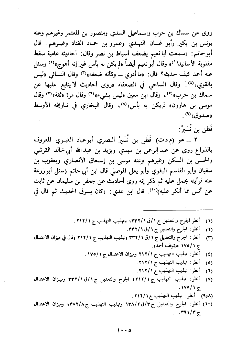 (¬10) انظر: الجرح والتعديل ج 3/ق2/138 وتهذيب التهذيب ج8/382؛ وميزان الاعتدال ج3/ 391.