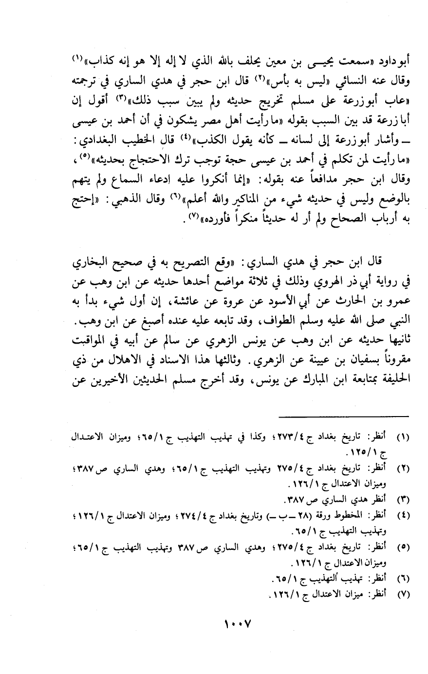 (¬2) انظر: تاريخ بغداد ج 4/275 وتهذيب التهذيب ج 5/61 وهدي الساري ص 387؛ وميزان الاعتدال ج1/126.