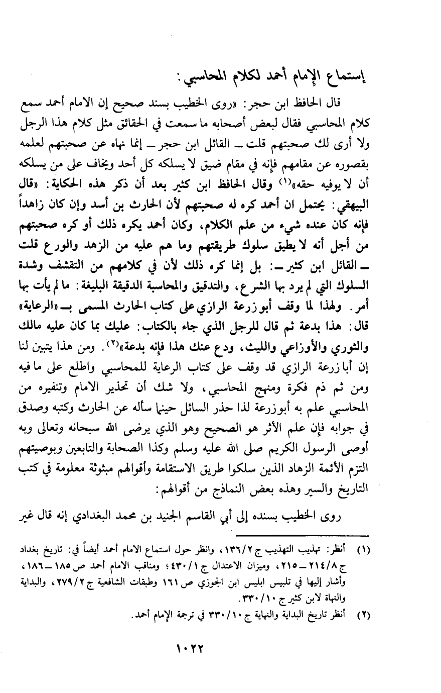 استماع الإمام أحمد لكلام المحاسبي:
