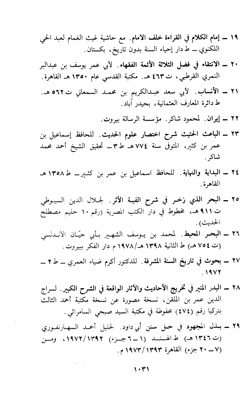 19- إمام الكلام في القراءة خلف الإمام. مع حاشية غيث الغمام لعبد الحي اللكنوي- ط دار إحياء السنة بدون تاريخ، بكستان.