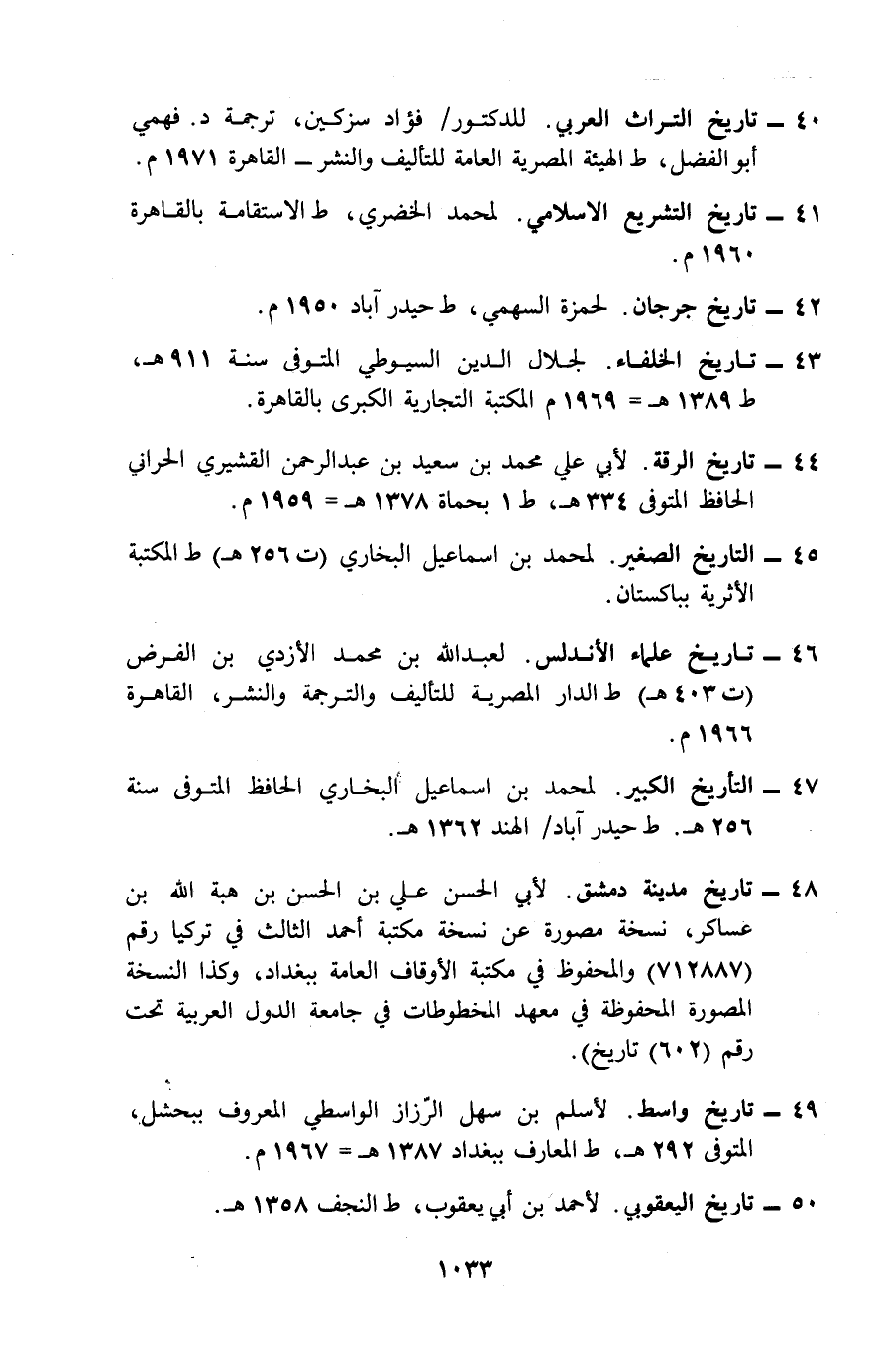 40- تاريخ التراث العربي. للدكتور/ فؤاد سزكين، ترجمة د. فهمي أبو الفضل، ط الهيئة المصرية العامة للتأليف والنشر- القاهرة 1971 م.