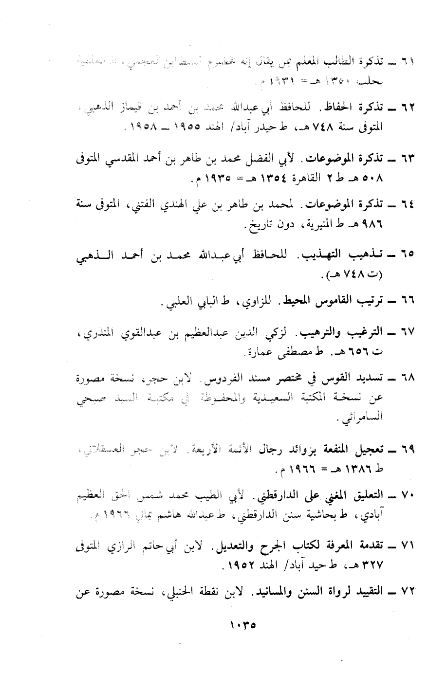 69- تعجيل المنفعة بزوائد رجال الأئمة الأربعة. لابن حجر العسقلاني، ط 1386 هـ ت 1966م.