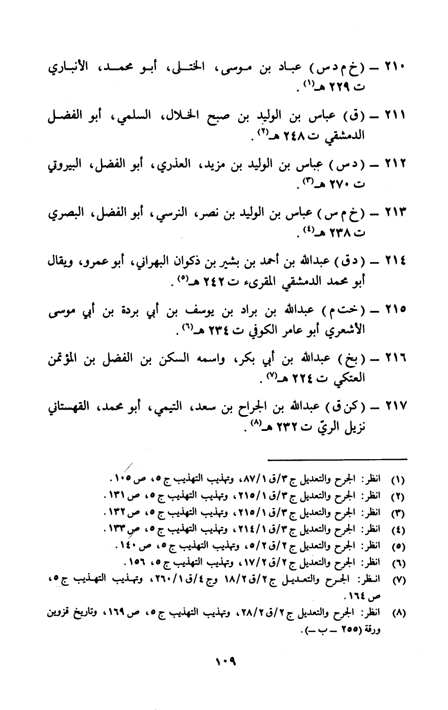 (¬6) انظر: الجرح والتعديل ج 2/ ق 2/17، وتهذيب التهذيب ج 5 ص 156.