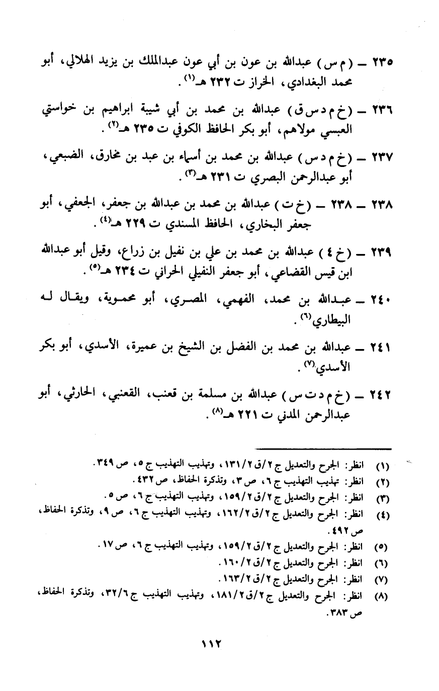 (¬8) انظر: الجرح والتعديل ج 2/ ق 2/ 181، وتهذيب التهذيب ج 6/32، وتذكرة الحفاظ ص 383.