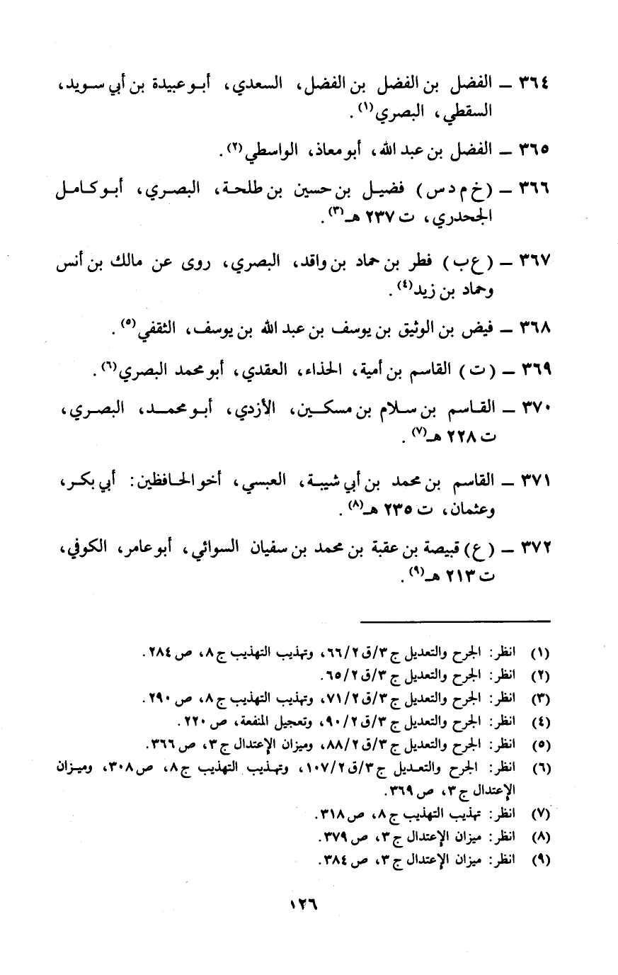 366- (خ م دس) فضيل بن حسين بن طلحة، البصري، أبو كامل الجحدري، ت237 هـ (¬3) .