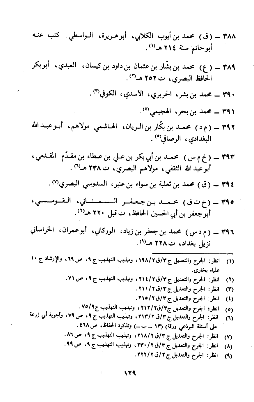 (¬8) انظر: الجرح والتعديل ج 3/ ق 2/ 230، وتهذيب التهذيب ج 9 ص 99.