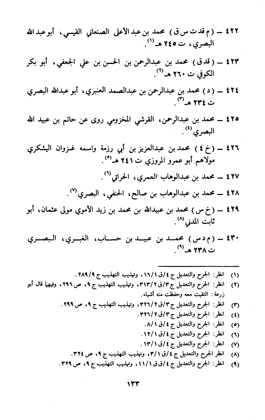 424- (د) محمد بن عبد الرحمن بن عبد الصمد العنبري، أبو عبد الله البصري ت 234 هـ (¬3) .