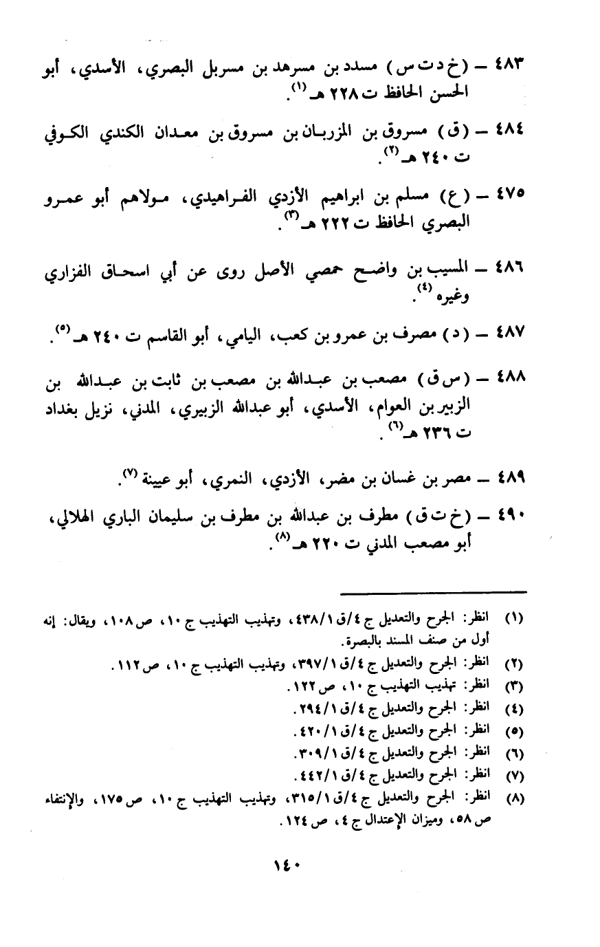(¬8) انظر: الجرح والتعديل ج 4/ ق 1/315، وتهذيب التهذيب ج 10 ص 175،
