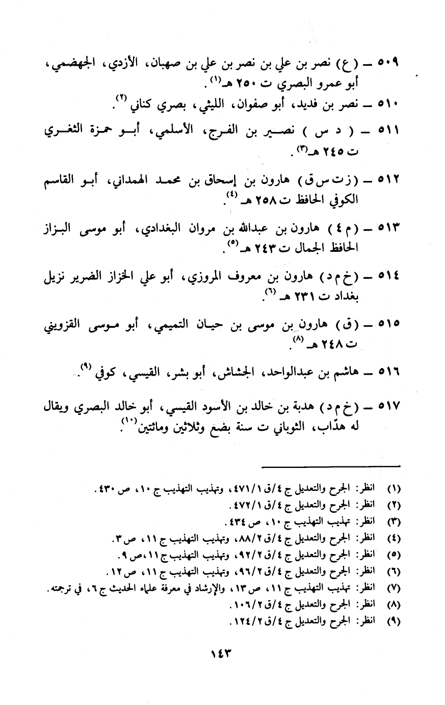 (¬5) انظر: الجرح والتعديل ج 4/ ق 2/92، وتهذيب التهذيب ج 11 ص 9.