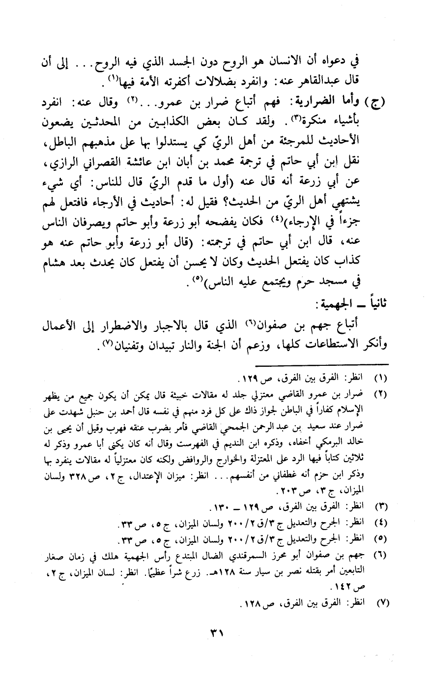 (¬6) جهم بن صفوان أبو محرز السمرقندي الضال المبتدع رأس الجهمية هلك في زمان صغار التابعين، أمر بقتله نصر بن سيار سنة 128 هـ. زرع شرا عظيما. انظر: لسان الميزان ج 2 ص 142..