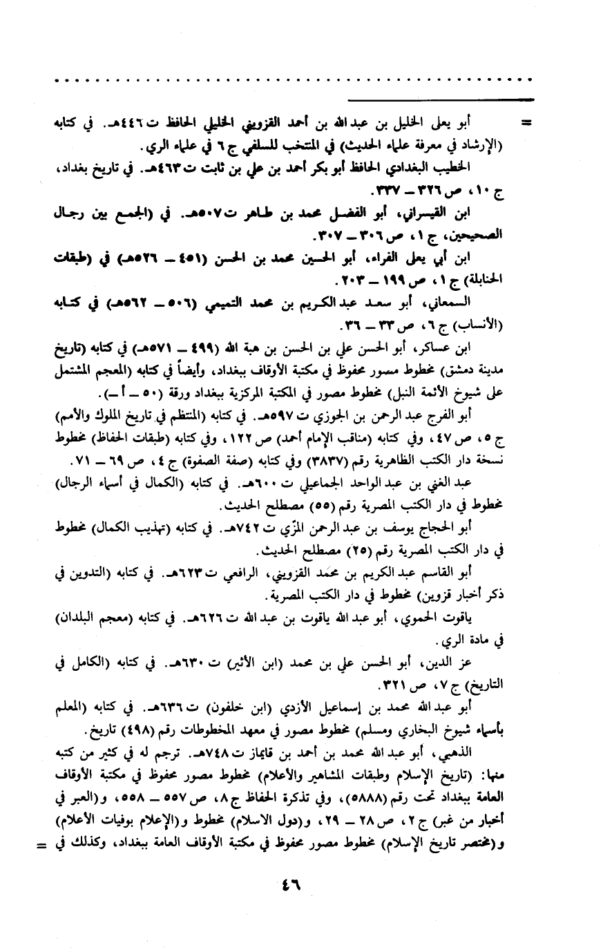 أبو يعلى الخليل بن عبد الله بن أحمد القزويني الخليلي الحافظ ت 446 هـ. في كتابه (الإرشاد في معرفة علماء الحديث) في المنتخب للسلفي ج 6 في علماء الري.