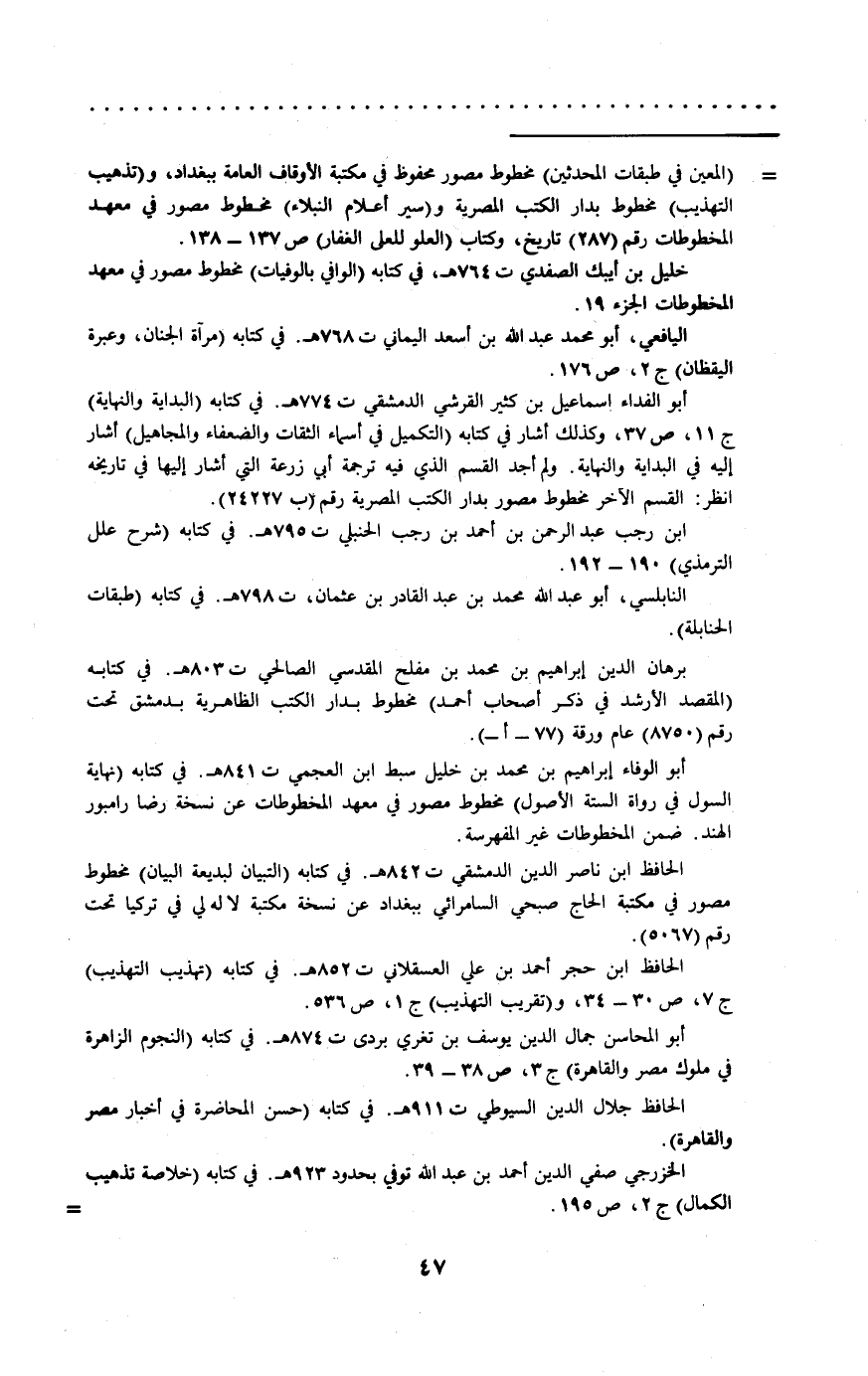 خليل بن أيبك الصفدي ت 764 هـ، في كتابه (الوافي بالوفيات) مخطوط مصور في معهد المخطوطات الجزء 19.