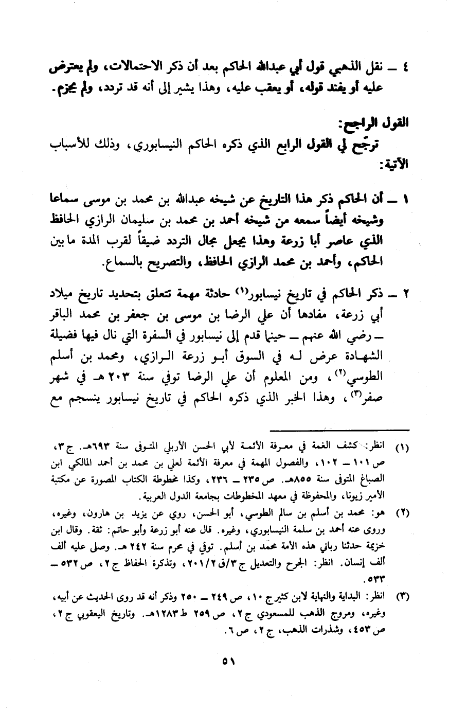 4- نقل الذهبي قول أبي عبد الله الحاكم بعد أن ذكر الاحتمالات، ولم يعترض عليه أو يفند قوله، أو يعقب عليه، وهذا يشير إلى أنه قد تردد، ولم يجزم.