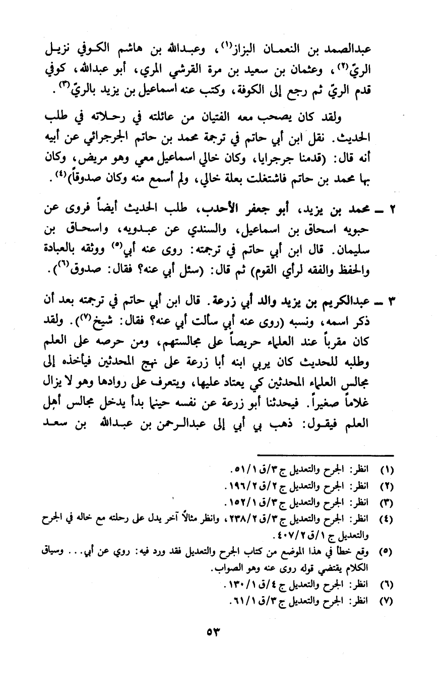 (¬4) انظر: الجرح والتعديل ج 3/ ق2/ 238، وانظر مثالاً آخر يدل على رحلته مع خاله في الجرح والتعديل ج ا/ ق2/ 407.