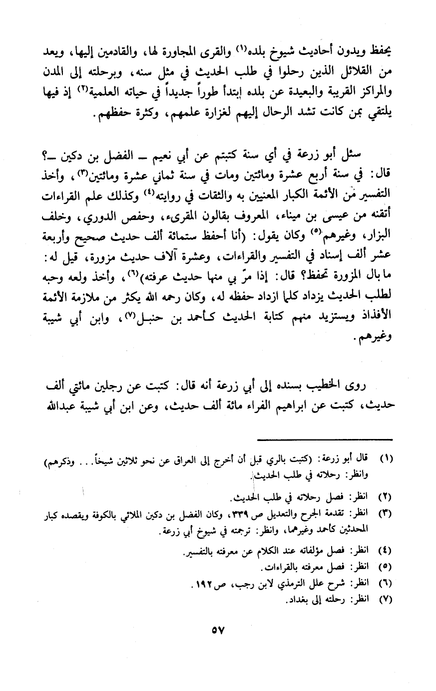 (¬1) قال أبو زرعة: "كتبت بالري قبل أن أخرج إلى العراق عن نحو ثلاثين شيخاً ... " وذكرهم وانظر: رحلاته في طلب الحديث.