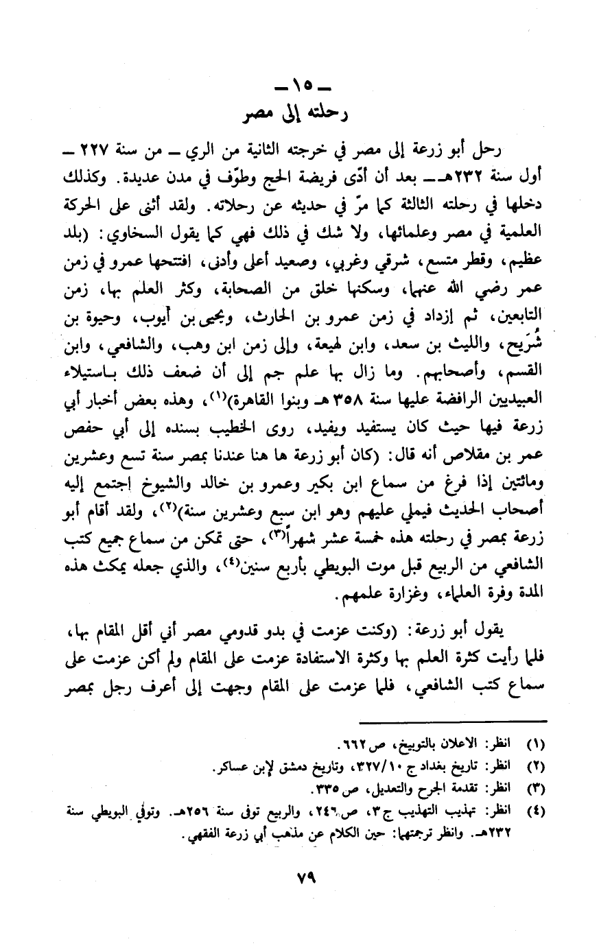 (¬4) انظر: تهذيب التهذيب ج 3 ص 246، والربيع توفي سنة 256 هـ. وتوفي البويطي سنة 232 هـ. وانظر ترجمتهما: حين الكلام عن مذهب أبي زرعة الفقهي.