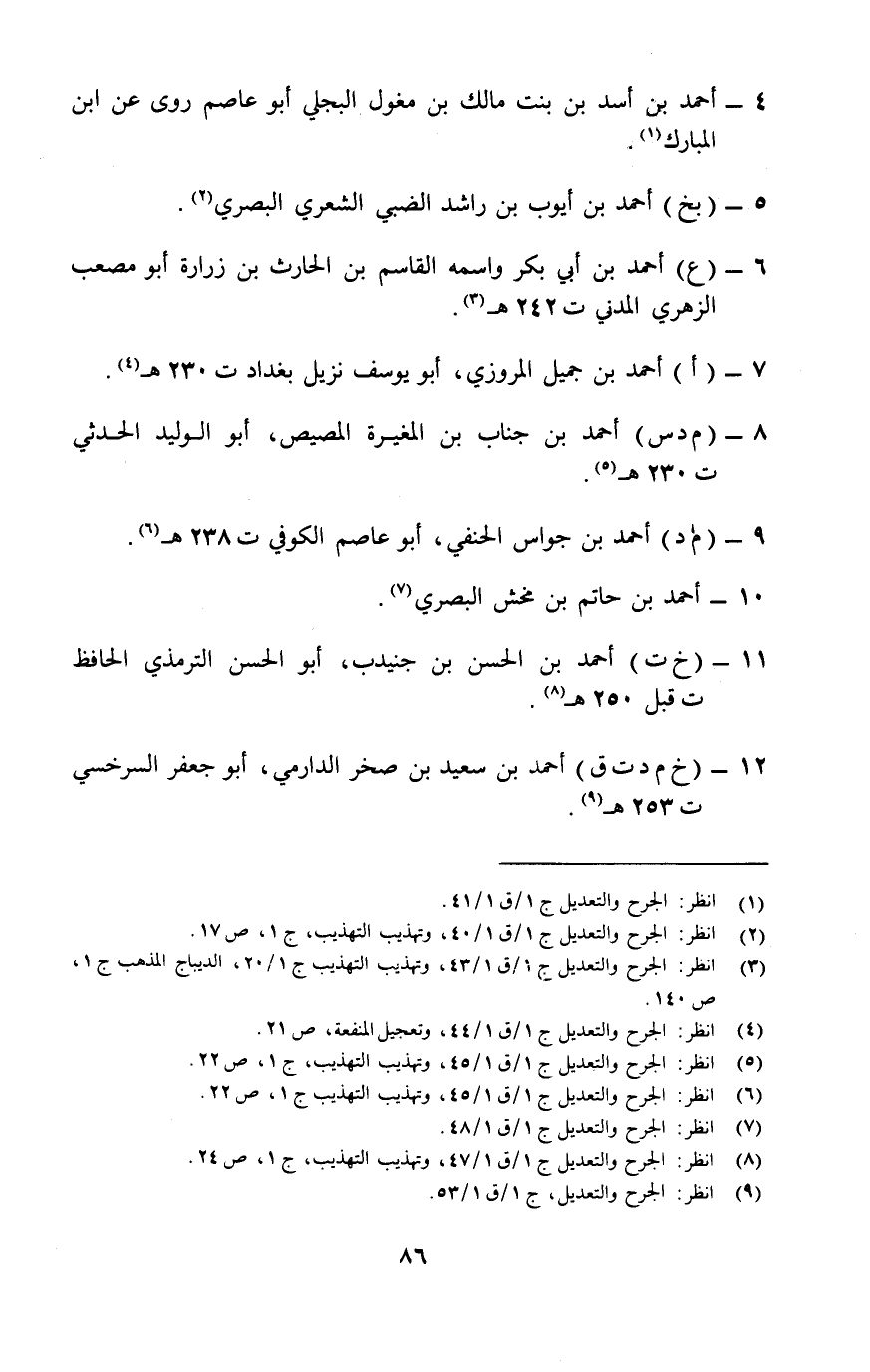 (¬6) انظر: الجرح والتعديل ج 1/ ق1/ 45، وتهذيب التهذيب ج 1 ص 22.