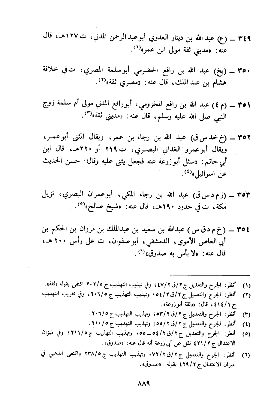 349- (ع) عبد الله بن دينار العدوي أبو عبد الرحمن المدني، ت127هـ، قَال عنه: "مديني ثقة مولى ابن عمر" (¬1) .