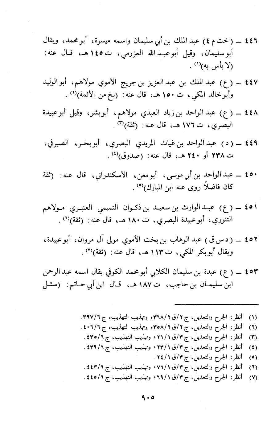 451- (ع) عبد الوارث بن سعيد بن ذكوان التميمي العنبرى مولاهم التنوري، أبو عبيدة البصري، ت 180 هـ، قال عنه: "ثقة" (¬6) .
