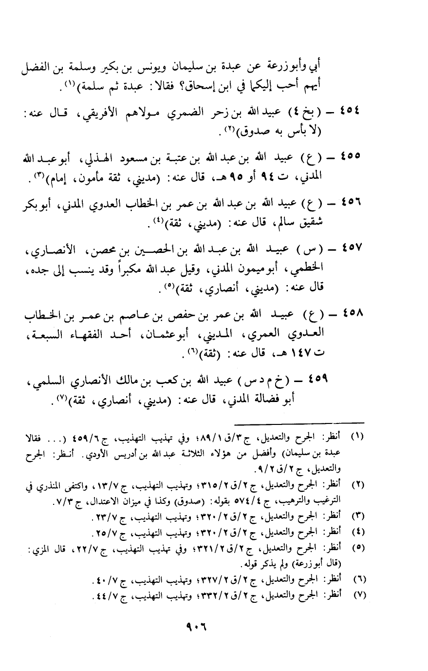 456- (ع) عبيد الله بن عبد الله بن عمر بن الخطاب العدوي المدني، أبو بكر شقيق سالم، قال عنه: "مديني، ثقة" (¬4) .