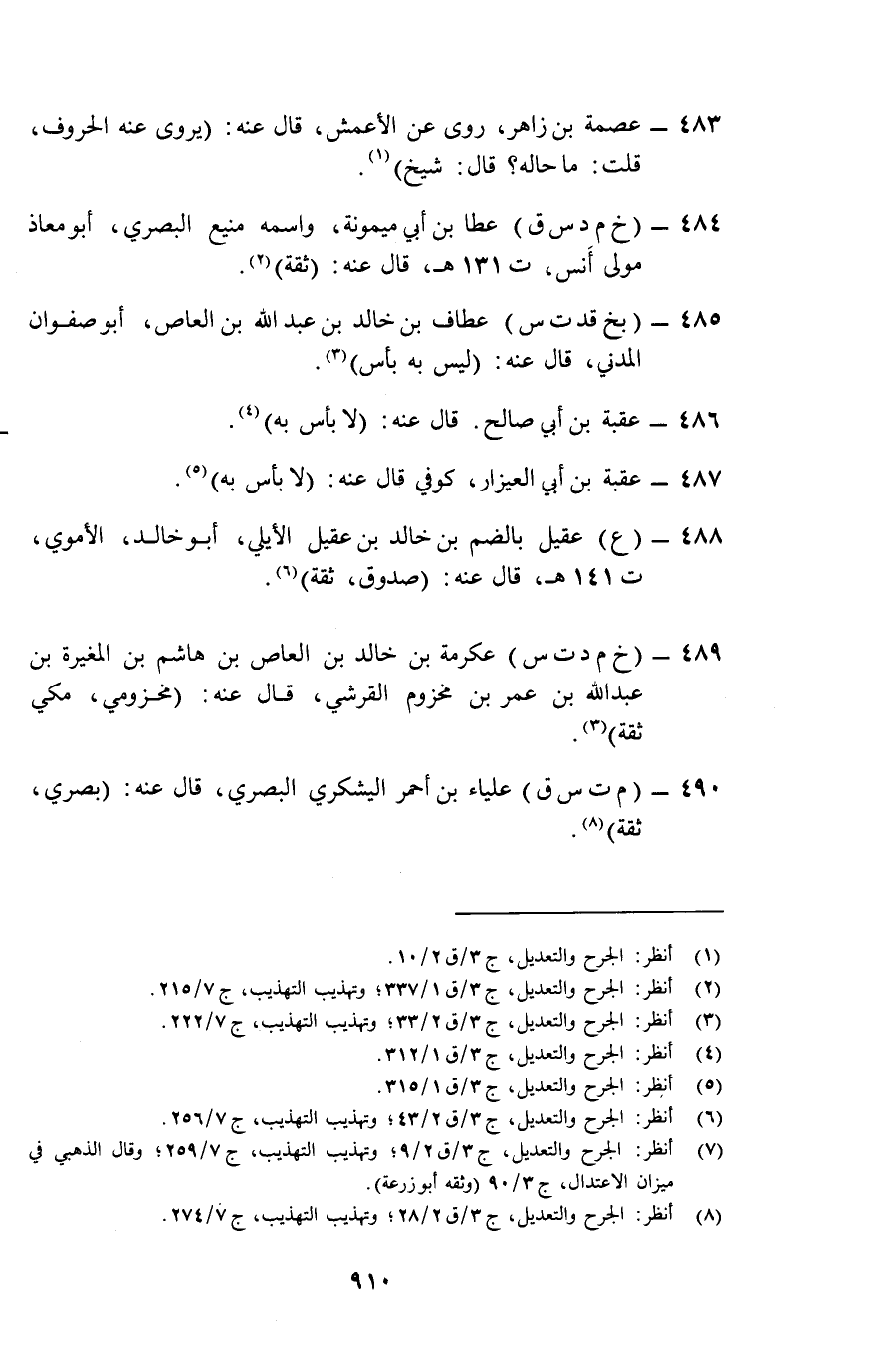 488- (ع) عقيل بالضم بن خالد بن عقيل الأيلي، أبو خالد، الأموي، ت 141 هـ، قال عنه: "صدوق، ثقة" (¬6) .