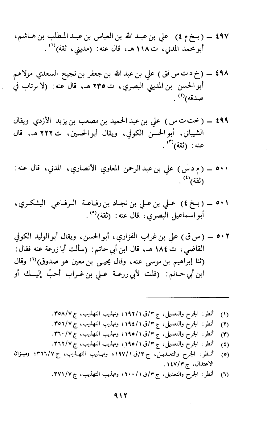 497- (بخ م 4) علي بن عبد الله بن العباس بن عبد المطلب بن هاشم، أبو محمد المدني، ت 118 هـ، قال عنه: "مديني، ثقة" (¬1) .