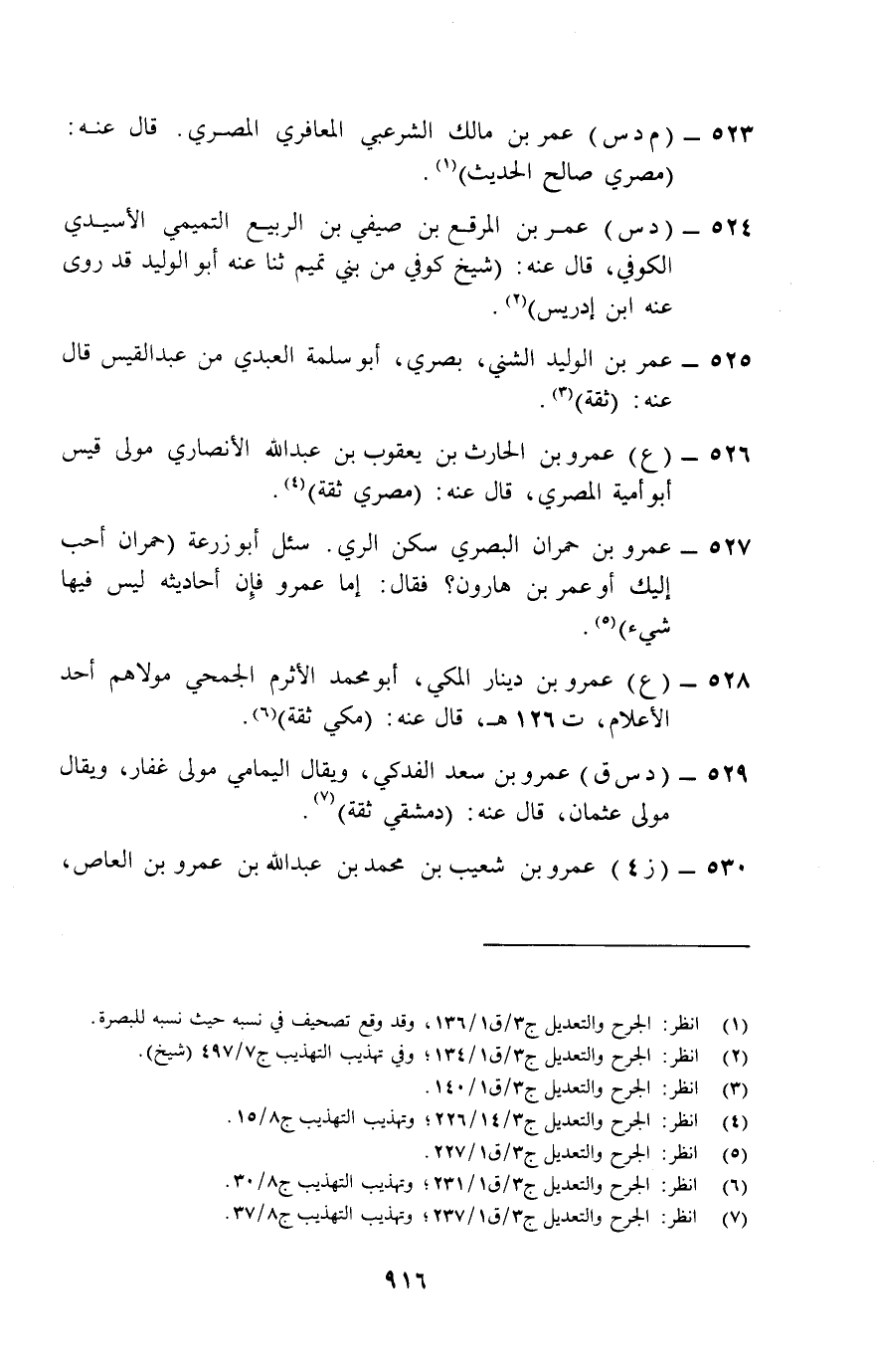528- (ع) عمرو بن دينار المكي، أبو محمد الأثرم الجمحي مولاهم أحد الأعلام، ت 126 هـ، قال عنه: "مكي ثقة" (¬6) .
