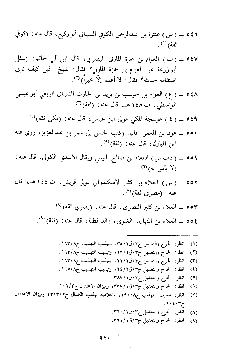 548- (ع) العوام بن حوشب بن يزيد بن الحارث الشيباني الربعي أبو عيسى الواسطي، ت 148هـ، قال عنه: "ثقة" (¬3) .