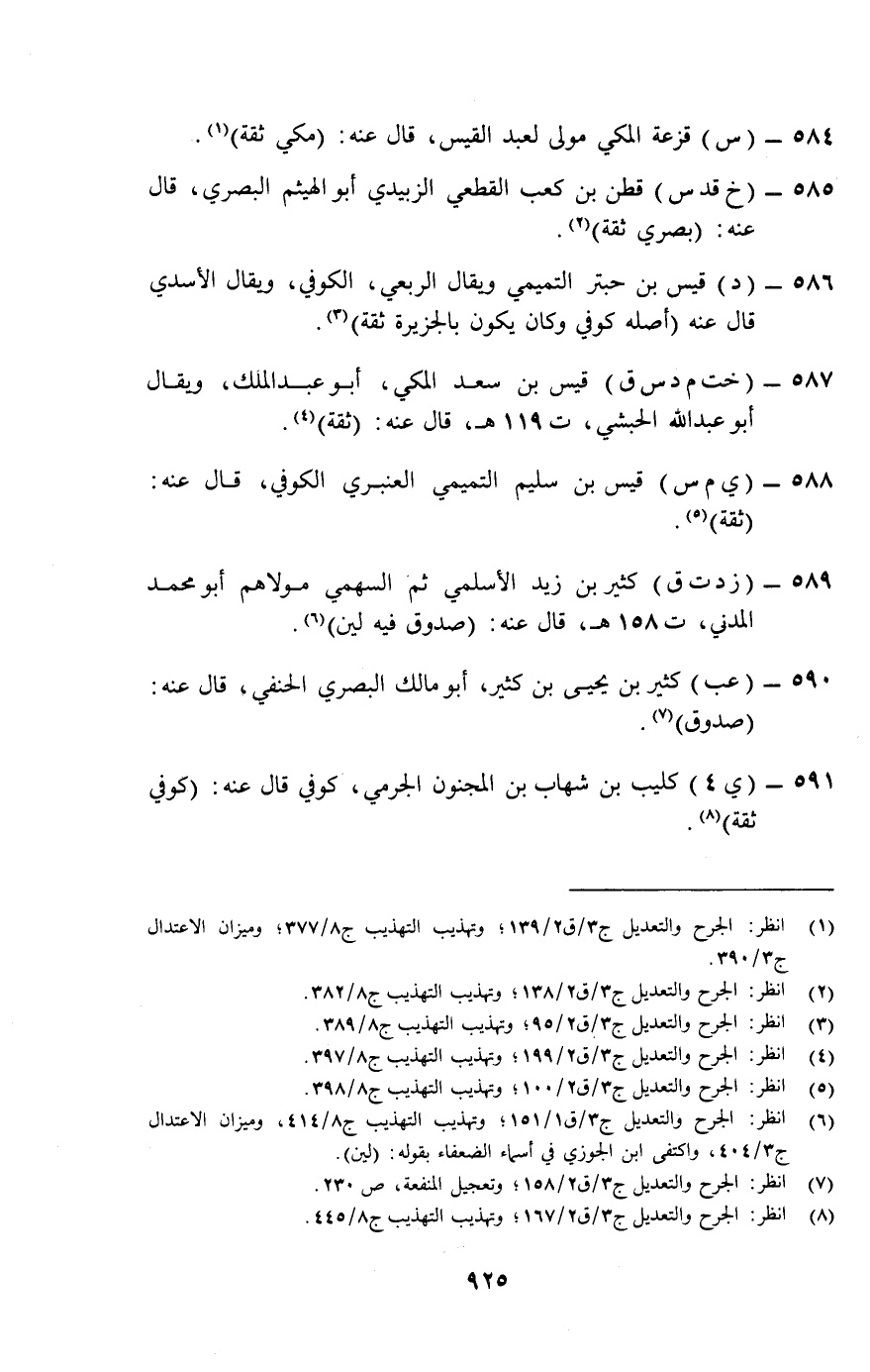 586- (د) قيس بن حبتر التميمي ويقال الربعي، الكوفي، ويقال الأسدي قال عنه "أصله كوفي وكان يكون بالجزيرة ثقة" (¬3) .
