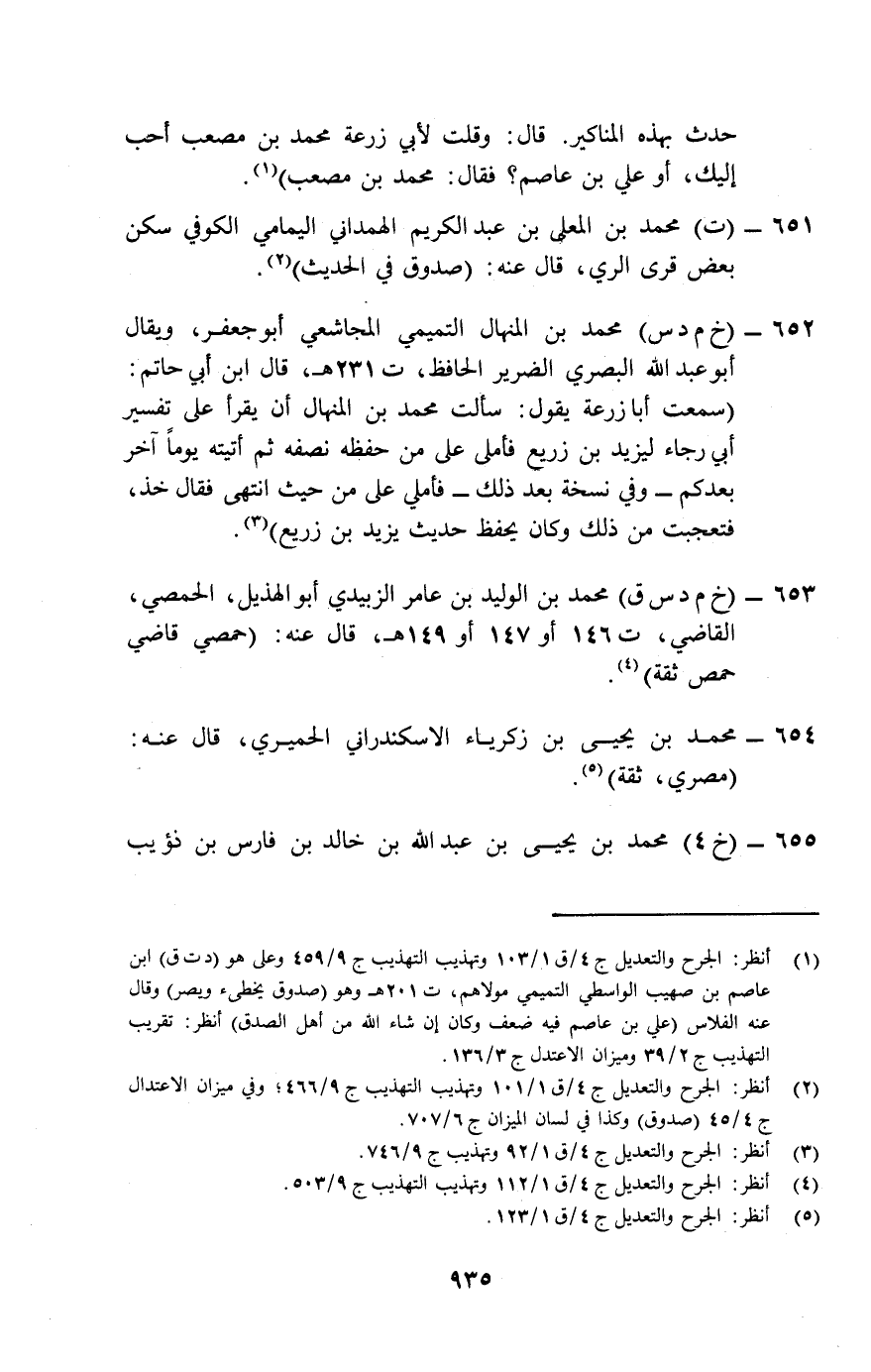 (¬5) انظر: الجرح والتعديل ج 4/ ق1/ 123.