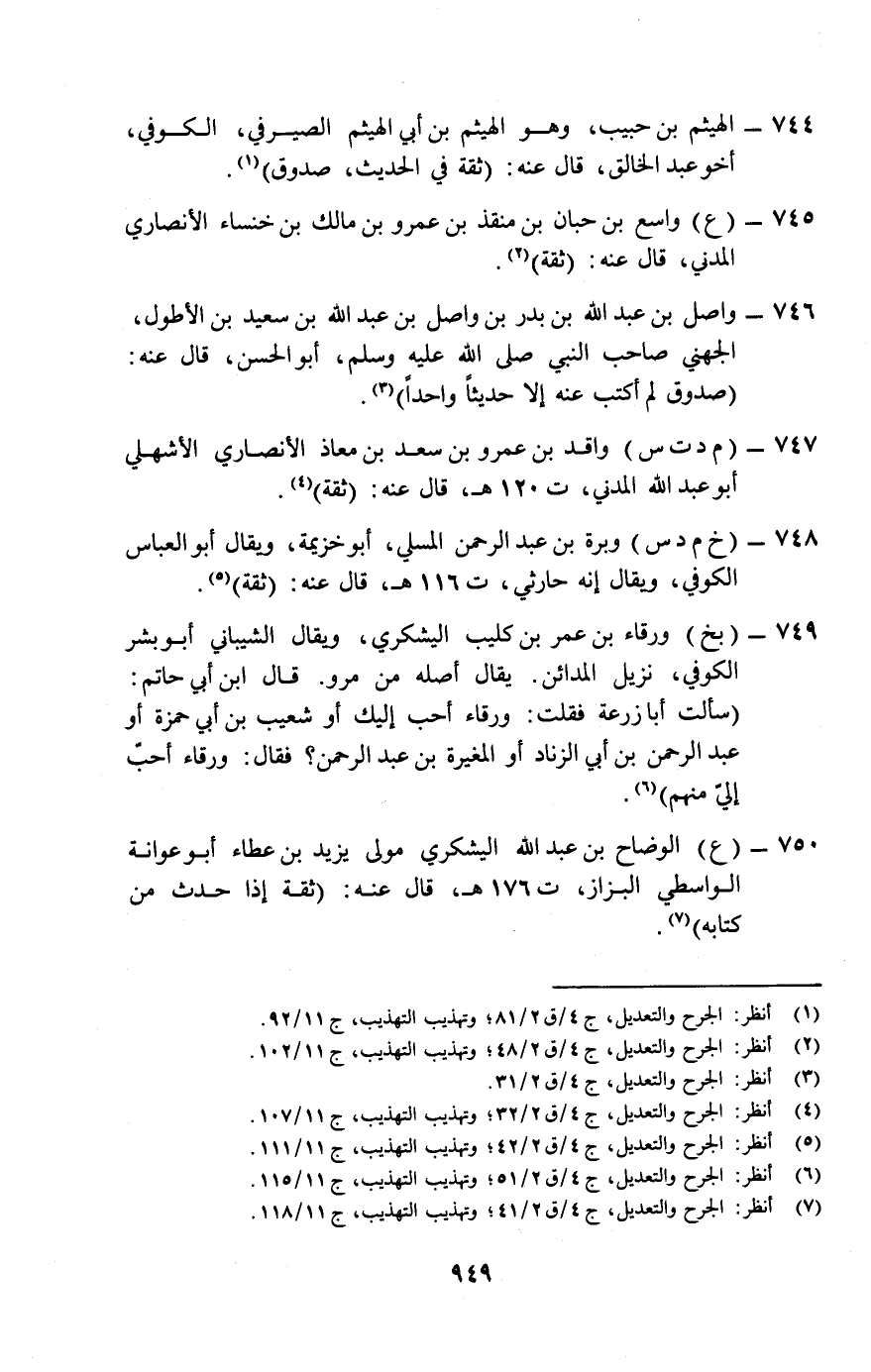 750- (ع) الوضاح بن عبد الله اليشكري مولى يزيد بن عطاء أبو عوانة الواسطي البزاز، ت 176 هـ، قال عنه: "ثقة إذا حدث من كتابه" (¬7) .