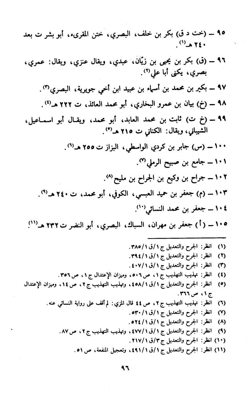105- (أ) جعفر بن مهران، السباك، البصري، أبو النضر ت 232 هـ (¬11) .