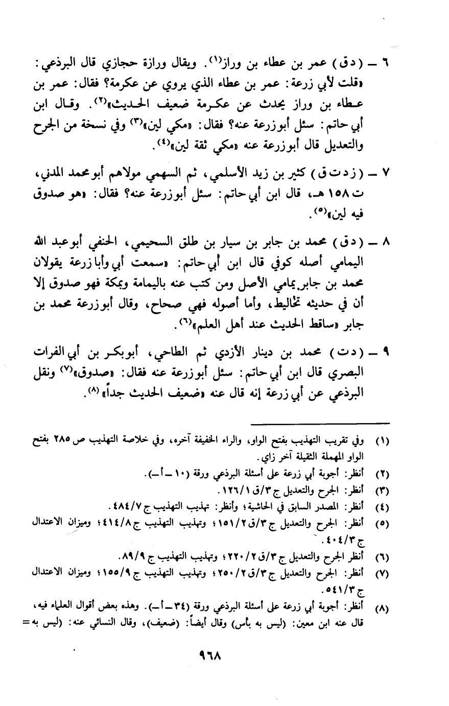 كتاب الضعفاء لأبي زرعة الرازي في أجوبته على أسئلة البرذعي - أبو زرعة الرازي وجهوده في السنة النبوية