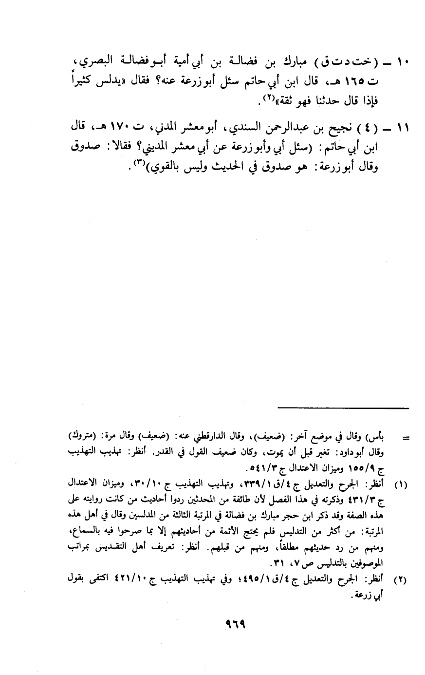(¬1) انظر: الجرح والتعديل ج 4/ق1/339، وتهذيب التهذيب ج10/30، وميزان الاعتدال ج3/431 وذكرته في هذا الفصل لأن طائفة من المحدثين ردوا أحاديث من كانت روايته على هذه الصفة وقد ذكر ابن حجر مبارك بن فضالة في المرتبة الثالثة من المدلسين وقال في أهل هذه المرتبة: من أكثر من التدليس فلم يحتج الأئمة من أحاديثهم إلا بما صرحوا فيه بالسماع، ومنهم من رد حديثهم مطلقا، ومنهم من قبلهم. انظر: تعريف أهل التقديس بمراتب الموصوفين بالتدليس ص 7، 31.