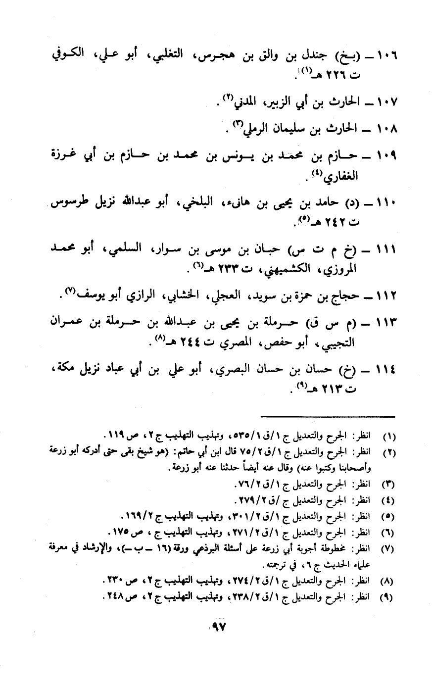 (¬9) انظر: الجرح والتعديل ج 1/ ق 2/238، وتهذيب التهذيب ج 2 ص 248.