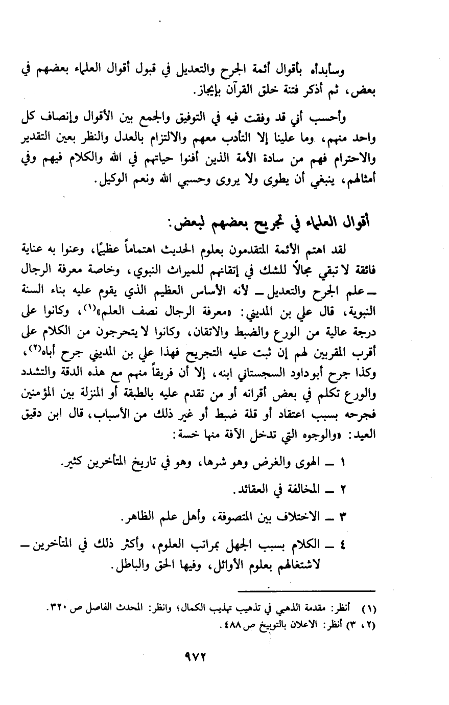 4- الكلام بسبب الجهل بمراتب العلوم، وأكثر ذلك في المتأخرين لاشتغالهم بعلوم الأوائل، وفيها الحق والباطل.