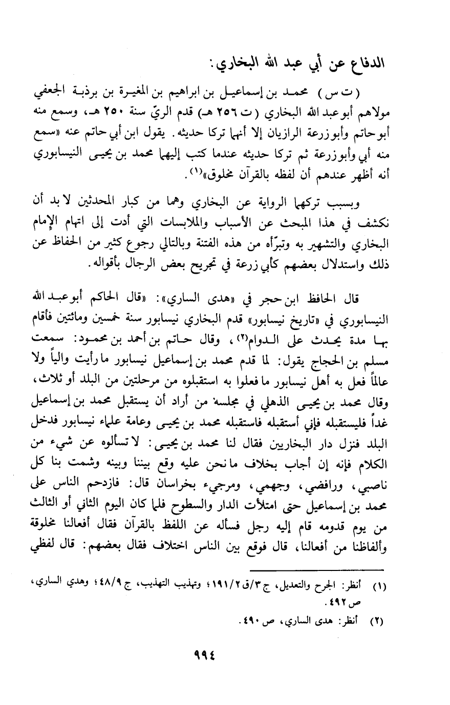 الدفاع عن أبي عبد الله البخاري: