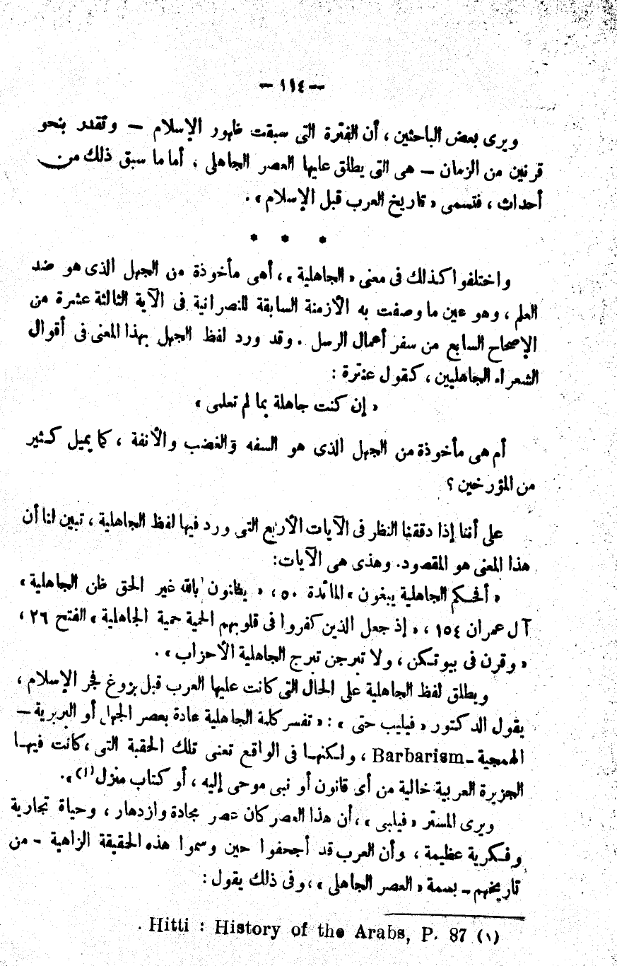 واختلفوا كذلك في معنى "الجاهلية" أهي مأخوذة من الجهل الذي هو ضد العلم، وهو عين ما وصفت به الأزمنة السابقة للنصرانية في الآية الثالثة عشرة من الإصحاح السابع من سفر أعمال الرسل؟ وقد ورد لفظ الجهل بهذا المعنى في أقوال الشعراء الجاهليين، كقول عنترة: