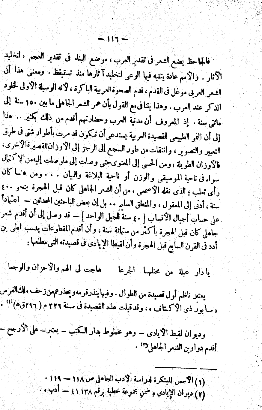 1 الأسس المبتكرة لدراسة الأدب الجاهلي ص118, 119.