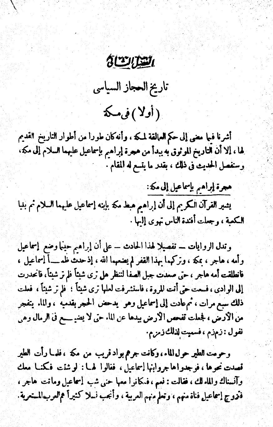 أشرنا فيما مضى إلى حكم العمالقة لمكة، وأنه كان طورا من أطوار التاريخ القديم لها، إلا أن التاريخ الموثوق به يبدأ من هجرة إبراهيم بإسماعيل -عليهما السلام- إلى مكة، وسنفصل الحديث في ذلك بقدر ما يتسع له المقام.