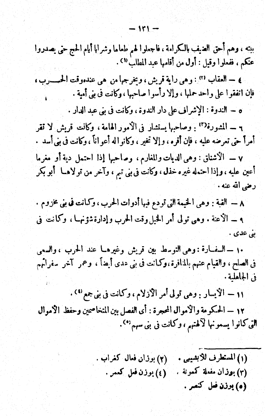 6- المشورة3: وصاحبها يُستشار في الأمور الهامة، وكانت قريش لا تقر أمرا حتى تعرضه عليه، فإن أقره وإلا تخير، وكانوا له أعوانا، وكانت في بني أسد.